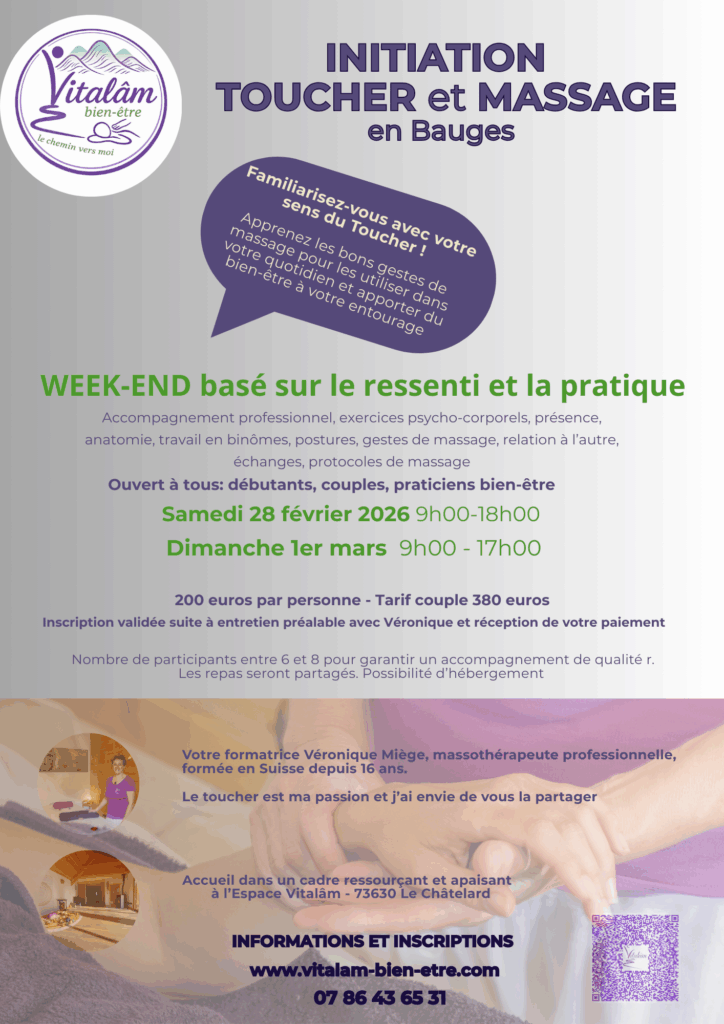 3 week-ends de formations 2026 INITIATION au TOUCHER et au MASSAGE